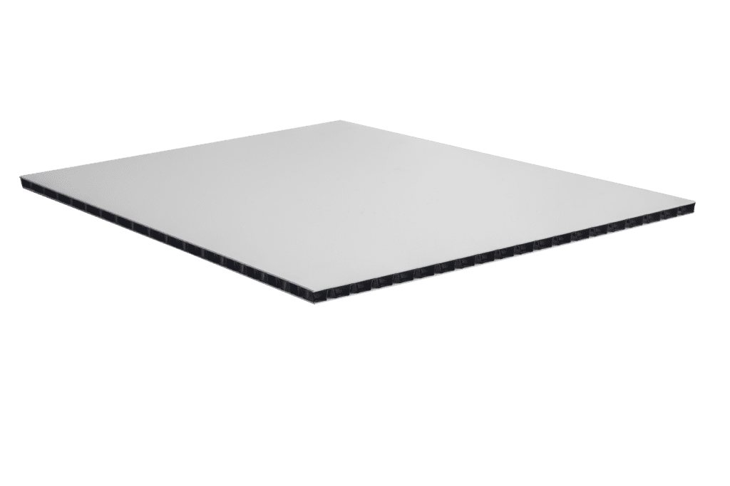 AkyBoard® combina dos capas sólidas de polipropileno unidas por un núcleo de burbujas termoformadas, ofreciendo una durabilidad y estabilidad excepcionales en todas direcciones.